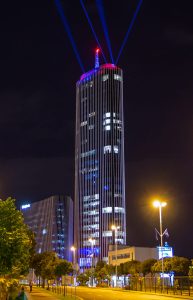 Zgrada je dio kompleksa Westgate Towers, koji uključuje dva nebodera. Prvi koji je izgrađen bio je 12-spratni, 55 metara visok Westgate Tower A, u kojem se nalazi sjedište Splitske banke, čija je izgradnja započela sredinom 2015., a otvoren krajem 2016. Drugi toranj u početku se zvao Westgate Tower B, a njegov početni broj spratova bio je 17 s visinom od 75 metara. Izgradnja je započela krajem 2016., no nakon što je dosegnut 17. sprat, radovi su zaustavljeni na šest mjeseci dok investitor nije dobio novu građevinsku dozvolu koja omogućuje izgradnju dodatnih 10 spratova, što sada ukupno iznosi 27. Radovi na tornju nastavljeni su sredinom 2018. Krajem 2017. projekt Westgate dobio je nagradu International Property Award za najbolji uredski neboder u Europi. Izgradnja je završena 2023. godine.