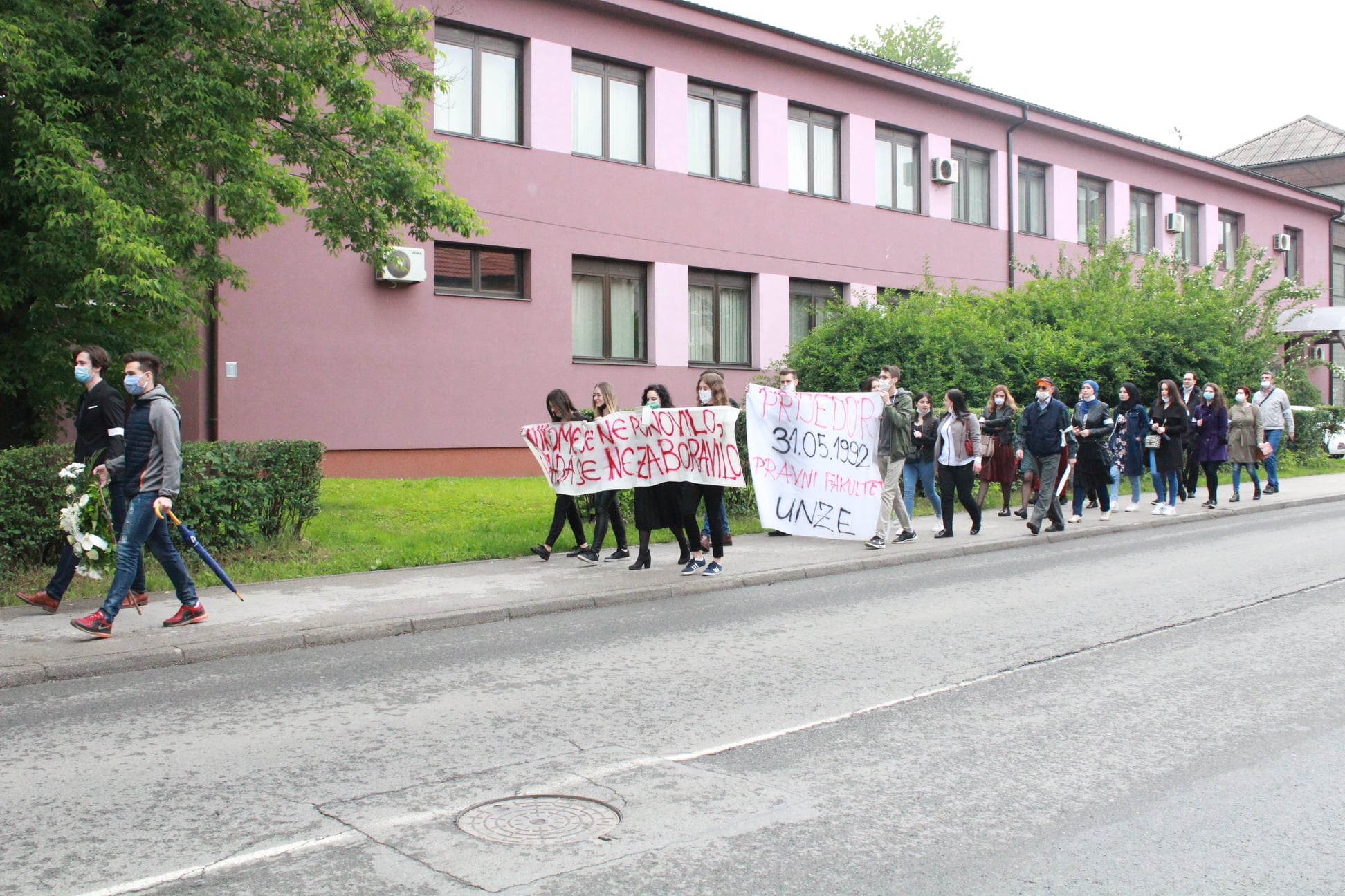 Na inicijativu studenata i uz podršku nastavnika Pravnog fakulteta Univerziteta u Zenici, danas je održan mimohod i odavanje počasti žrtvama prijedorskoga kraja. Šetnjom od zgrade fakulteta do Spomen-obilježja Kameni spavač u centru grada, obilježen je Dan bijelih traka, koji se u spomen na prijedorske žrtve proteklog rata obilježava 31. maja.