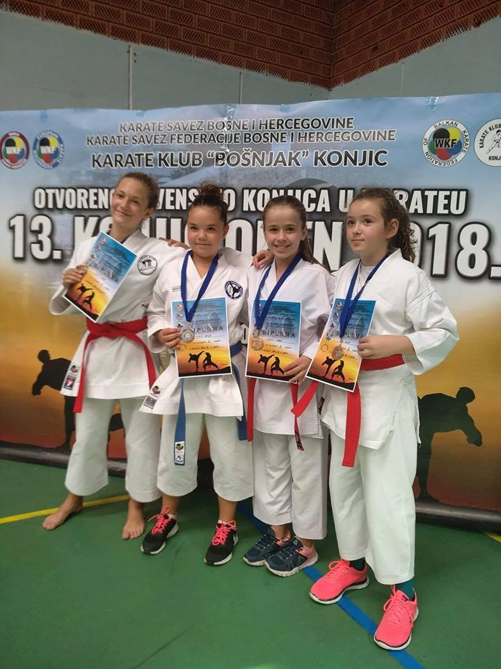FOTO: Zlato i srebro za Lanu Zakić na “13. KONJIC OPEN 2018.” – U Konjicu je održano 13.otvoreno prvenstvo u karateu “13.KONJIC OPEN 2018.”. Učestvovalo je 44 kluba iz BiH i Hrvatske sa preko 460 takmičara.