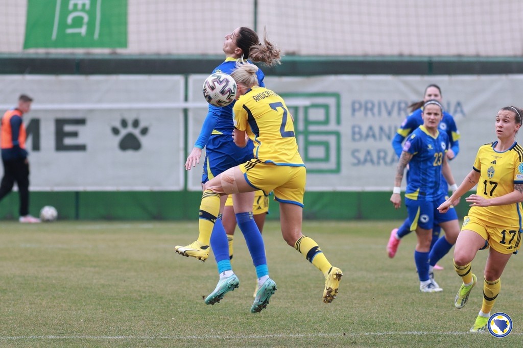 Ženska „A“ reprezentacija Bosne i Hercegovine poražena je danas u Zenici od Švedske sa 0:5 u prvom susretu baraža za UEFA A Ligu nacija.