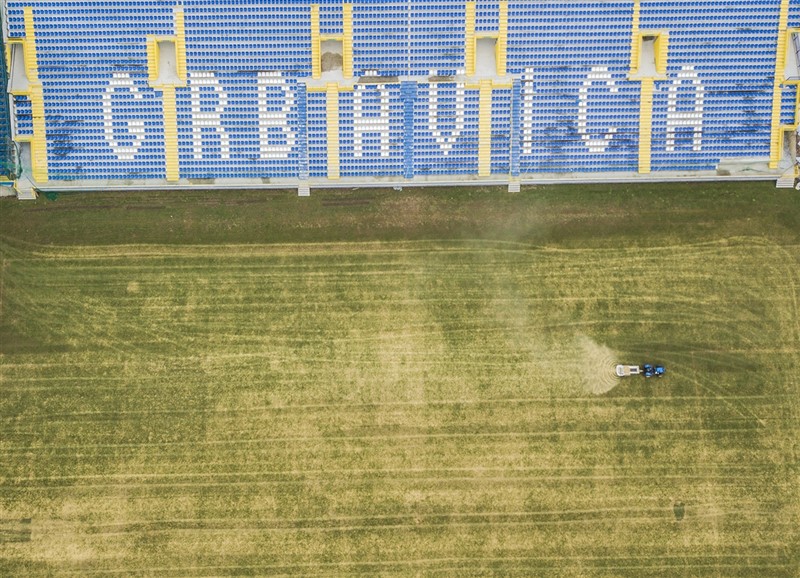 Zenička Alba je započela radove na održavanju sarajevskog stadiona Grbavica. Pogledajte video i foto galeriju naših prijatelja sa Dron.ba