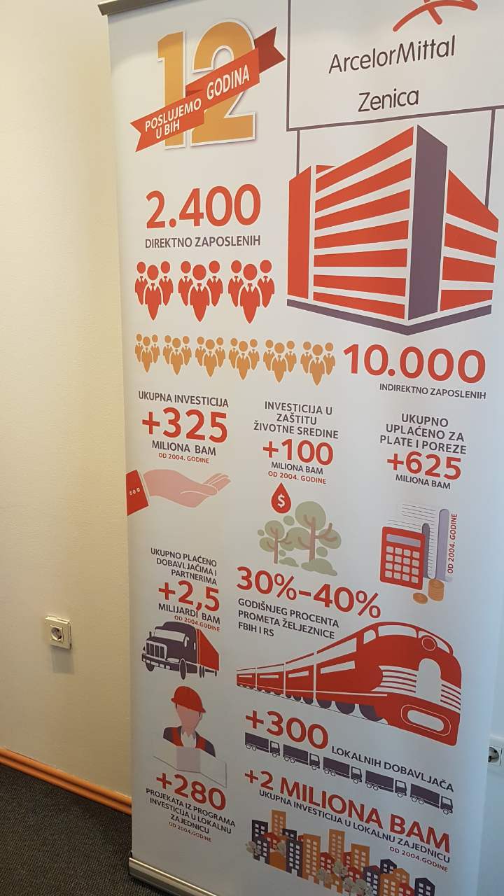 Sa proizvodnim aktivnostima u Zenici, u Federaciji, i u Prijedoru, u Republici Srpskoj, ArcelorMittal je vodeći pokretač privrede u regiji. Ove dvije kompanije zajedno zapošljavaju 3,150 ljudi i još 10,000 indirektno, preko više od 600 dobavljača. Od 2004. ArcelorMittal je u Bosnu i Hercegovinu uložio više od 190 miliona Eura od kojih je preko 50 miliona Eura uloženo u projekte za zaštitu okoliša a 3 miliona Eura u projekte razvoja lokalne zajednice.