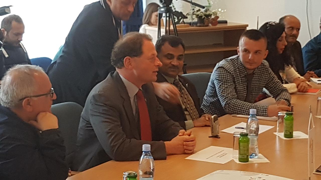 Generalni direktor AMZ Biju Nair prije zvaničnog obraćanja medijima federalnu ministricu Editu Đapo je upoznao o investicijama i planovima kompanije za naredni period kako bi poboljšali kvalitet okoliša u Zenici.