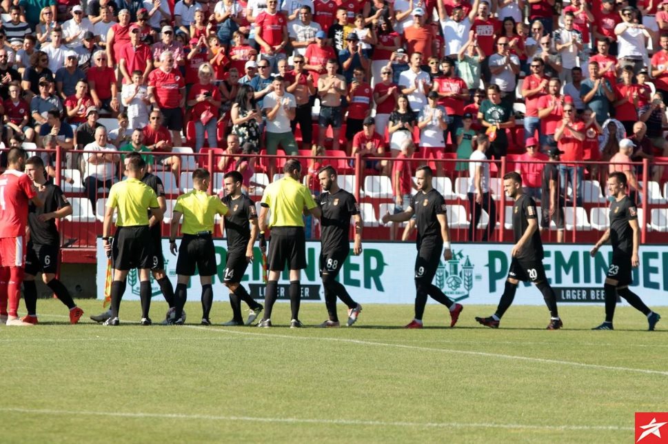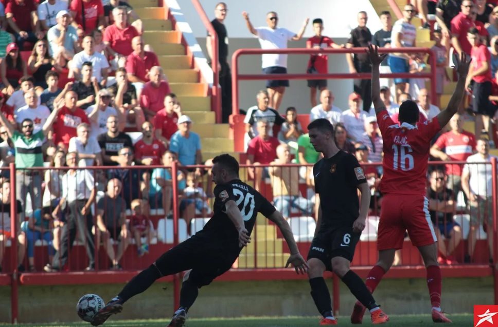 Velež je krenuo ofanzivno od prve minute, a već u petoj su umalo poveli. Raguž je pogriješio, poklonio je loptu Nusmiru Fajiću, ali Pavlović zaustavlja udarac napadača domaćeg tima.
