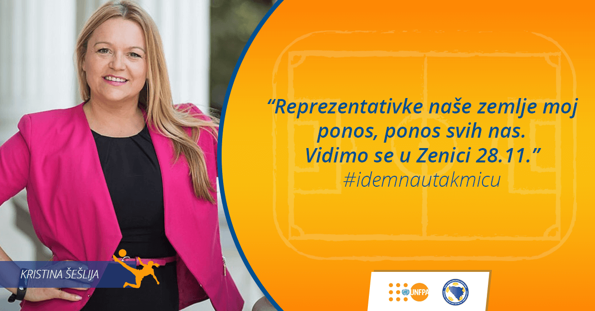“Populacijski fond Ujedinjenih naroda (UNFPA) je prepoznao napore, obaveze i energiju mladih žena iz ženskog nacionalnog fudbalskog tima, koje time daju svoj doprinos drugim mladim ženama širom zemlje. Vjerujemo da rodne uloge ne smiju i ne bi trebale spriječiti žene i muškarce u dostizanju svojih maksimalnih potencijala, i nema boljeg primjera rušenja rodnih barijera od primjera koje daju ove mlade žene. Ponosni smo što ih podržavamo od 2016. godine i sigurno je da ćemo nastaviti promovisati ženski fudbal u godinama koje dolaze”, izjavila je dr Doina Bologa, predstavnica UNFPA u BiH.