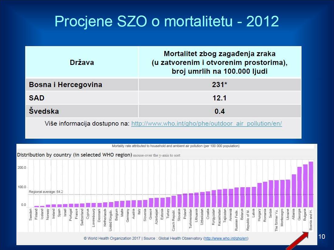 Procjenjuje se da ovim preuranjenim smrtnim slučajevima najviše doprinosi zaga đenje zraka (6,5 miliona), i to samo od čestica fine prašine i prizemnog ozona.