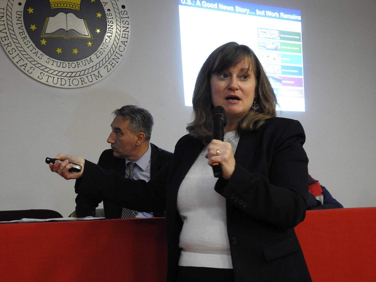 Predavač je bila Bet Haset Sipl (Beth M. Hassett-Sipple), naučni saradnik Agencije za zaštitu okoliša SAD (U.S. EPA), koja je trenutno angažovana u Ambasadi SAD u Sarajevu.