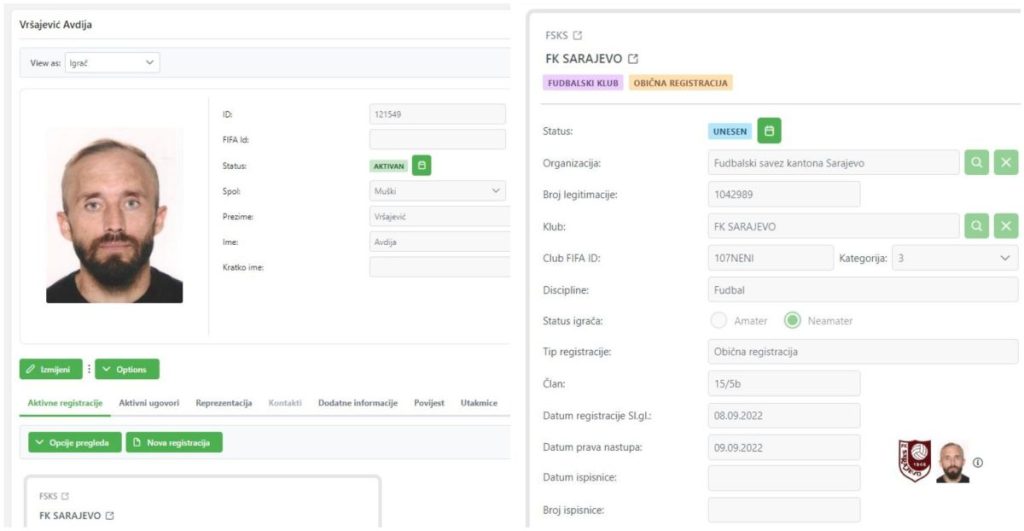 Ovo su informacije koje su objavljene u sistemu Comet, kojem rukovodi Fudbalski saveza BiH.