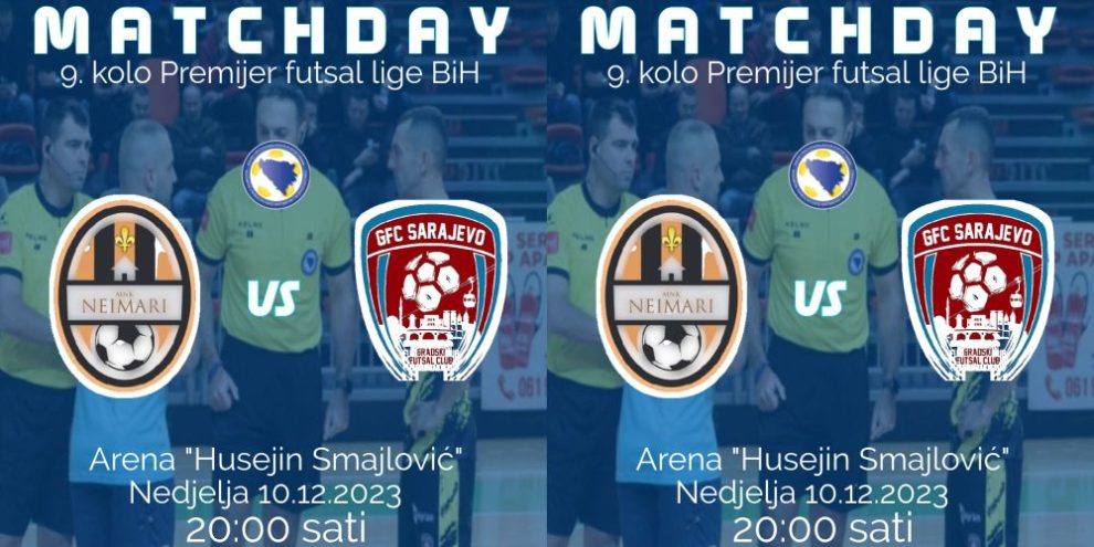 Utakmica 9. kola Premijer futsal lige BiH, MNK Salines-Neimari – GFC Sarajevo igra se večeras 10.12.2023.godine, u gradskoj Areni „Husejin Smajlović“ sa početkom u 20 sati.