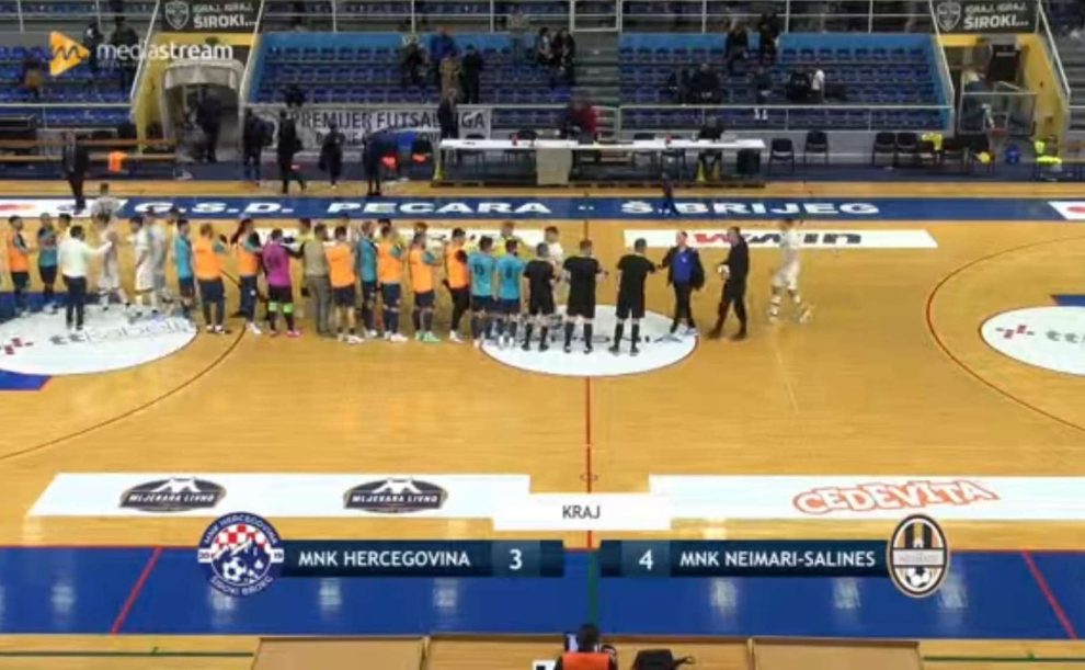 U 12 kolu Premijer lige BiH u futsalu (3. kolo drugog dijela sezone) malonogometni klub (MNK) „Salines-Neimari“ Zenica gostovao je u Širokom Brijegu kod ekipe MNK Hercegovina. Utakmica je odigrana U GSD Pecara od 19 sati pred oko 150 gledalaca. Pobjedu u ovom meču ostvarila je gostujuća, zenička ekipa MNK Salines-Neimari.