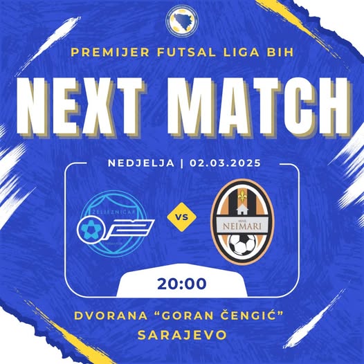 Zenički Neimari u nedjelju, 02.marta, gostuju u Sarajevu kod ekipe Futsal Željezničar, susret počinje u 20:00 u SD Novo Sarajevo, dvorana „Goran Čengić“.