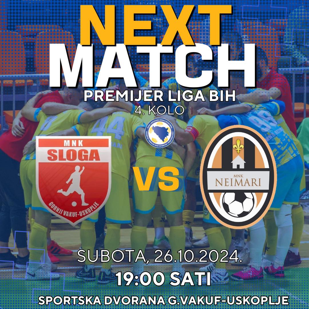Domaći malonogometaši Sloge žele pred punom dvoranom nastaviti seriju i doći do omjera na početku sezone 4/4. Sa druge strane Neimari žele da poprave dojam nakon slabe partije i rezultatskog debakla u prošlom kolu.