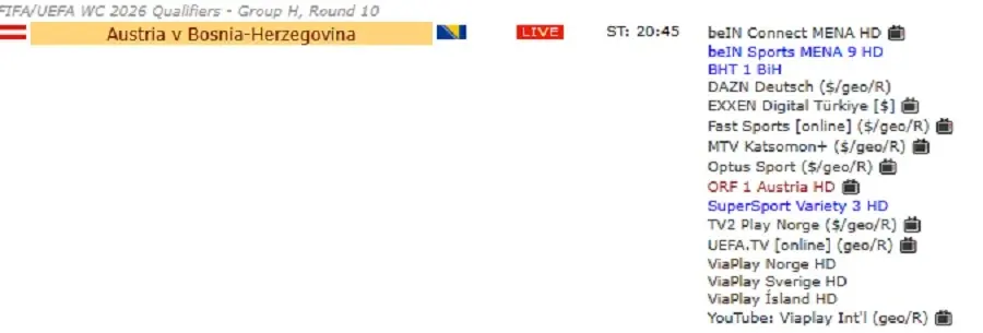 U BiH utakmicu prenose BHT1 i MYTV, u Austriji ORF, a kamere iz Beča slat će signal i brojnim platformama širom Evrope.