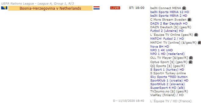 Gdje gledati utakmicu BiH i Nizozemske: Susret Lige nacija na velikom broju kanala – Utakmica 3. kola Lige Nacija između BiH i Nizozemske bit će emitovana u dikretnom prenosu na kanalu Nova BH, a još nekoliko evropskih TV kuća prenosit će sutrašnji meč iz Zenice.