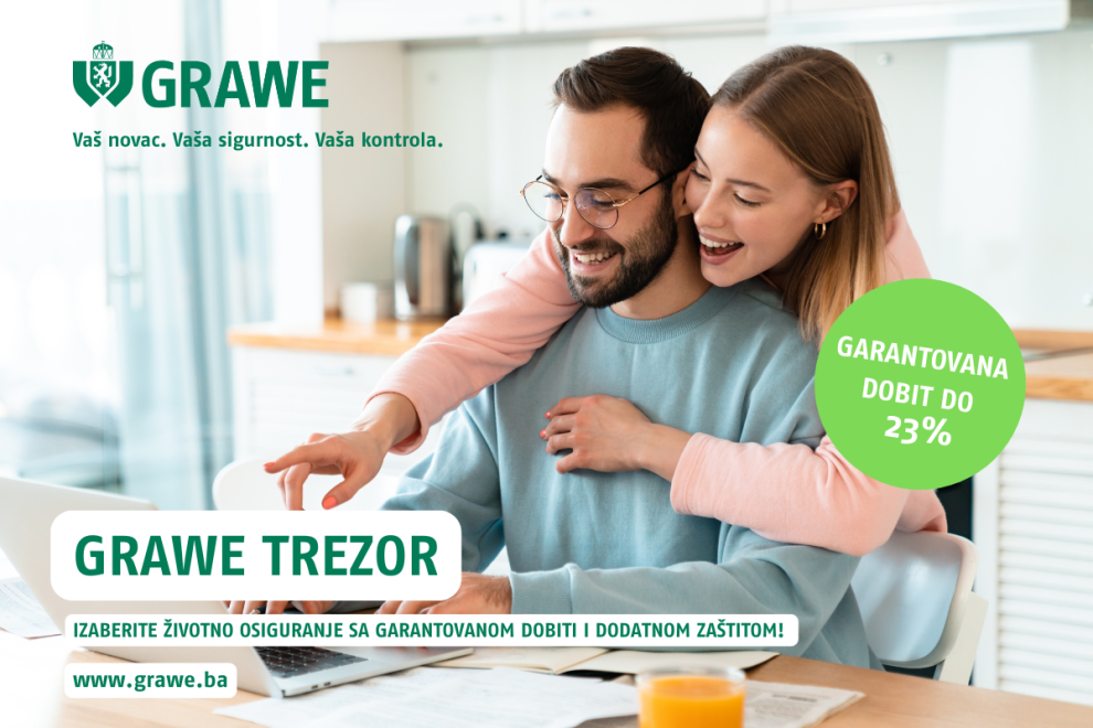 Zato sve više ljudi bira rješenja koja spajaju najbolje iz dva svijeta – stabilan rast štednje i sigurnosnu mrežu životnog osiguranja. Upravo takvu kombinaciju sigurnosti i rasta nudi GRAWE TREZOR – proizvod koji spaja stabilnu štednju sa garantovanom dobiti i životnim osiguranjem. Vaš novac radi za vas, a vi imate mir i kontrolu nad svojim finansijama i životom.