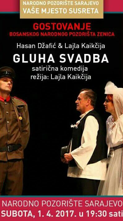 U znaku dobre saradnje Bosanskog narodnog pozorišta Zenica i Narodnog pozorišta Sarajevo, uspješna predstava BNP-a „ Gluha svadba “ u režiji Lajle Kaikčije gostuje u Narodnom pozorištu Sarajevo u subotu, 01. aprila u 19. 30 sati. Ovim gostovanjem će se obilježiti i Svjetski dan šale i smijeha, gdje će publika imati priliku da uživa u predstavi koja ima sposobnost da nasmije, ali i postavi neka od esencijalnih životnih pitanja.