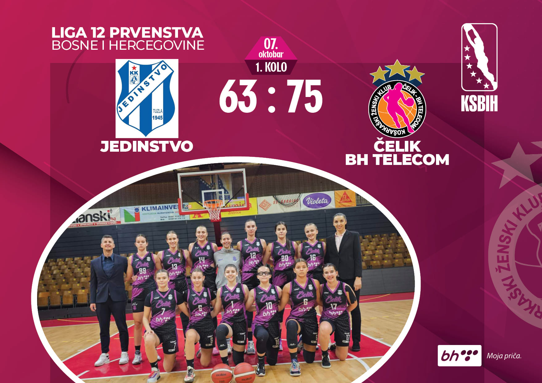 U utakmici prvog kola bh. košarkaške lige (Liga 12), za sezonu 2023/2024, košarkašice KŽK Čelik BH Telecom bile su na gostovanju kod ekipe ŽKK Jedinstvo u Tuzli. Vrijednu, gostujuću pobjedu u ovom susretu ostvarila je  gostujuća ekipa KŽK Čelik BH Telecom.