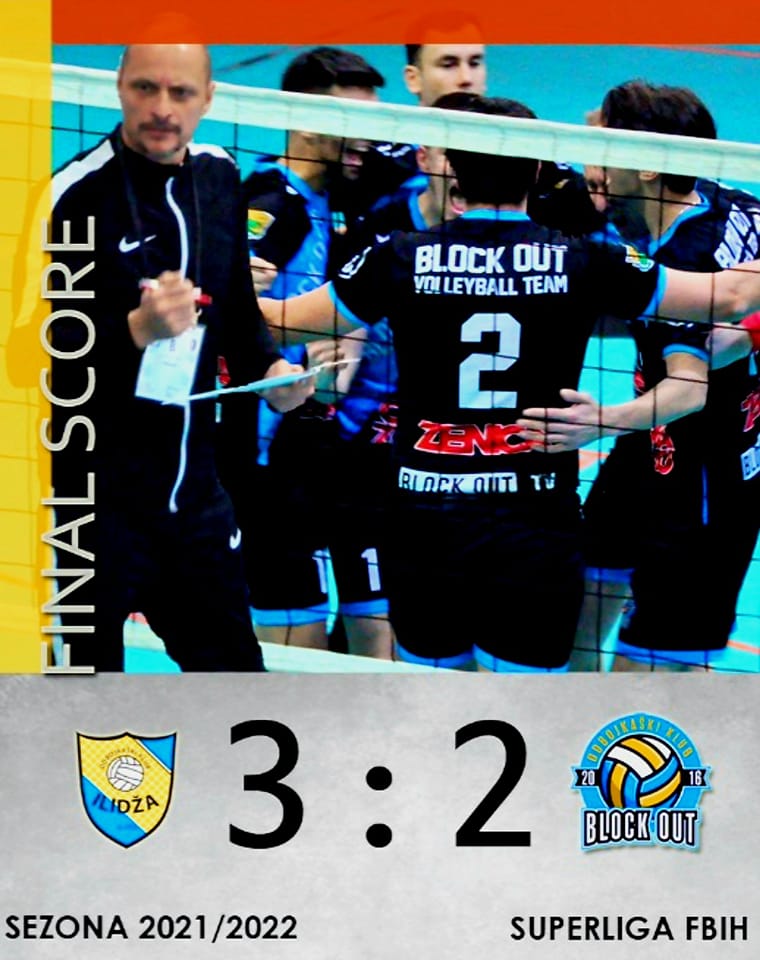 OK “Ilidža” – OK “Blok Out” Zenica 3:2 (22:25, 25:10, 25:20, 22:25, 15:7) -109 : 87;
