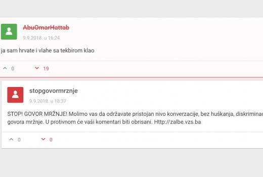 Vijeće za štampu BiH je u periodu od 17. avgusta do 18. novembra 2018. godine vodilo kampanju „STOP! Govor mržnje“ koja se odnosila upravo na monitoring komentara posjetilaca online medija. Sličnu kampanju Vijeće je imalo i pred izbore 2014. godine, kada su u 42 online medija tokom tri mjeseca zabilježena 1.442 slučaja govora mržnje i huškanja. U 2018. rezultati su mnogo lošiji, čak i kad se u obzir uzme da su internet sadržaji mnogo lakše dostupni nego prije četiri godine. Kod samo sedam medija, za period od tri mjeseca, zabilježena su čak 2.544 komentara sa neprimjerenim porukama.