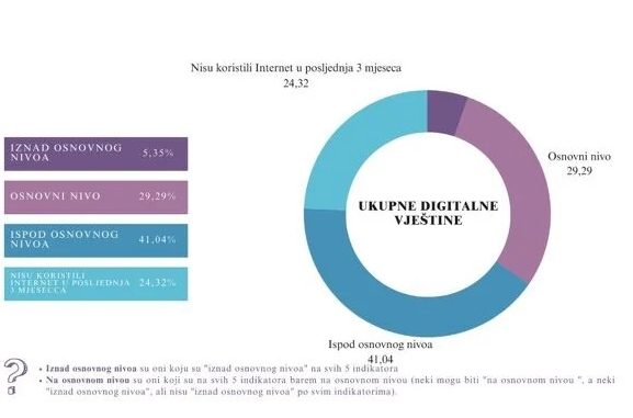 Čak 41,04% stanovništva je ispod osnovnog nivoa digitalnih vještina, što sugeriše da im nedostaju neke od osnovnih kompetencija.