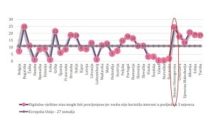 BiH je zajedno sa Bugarskom najlošija država po pitanju osoba kojima digitalne vještine nisu mogle biti procijenjene jer osoba nije koristila internet u posljednja 3 mjeseca.