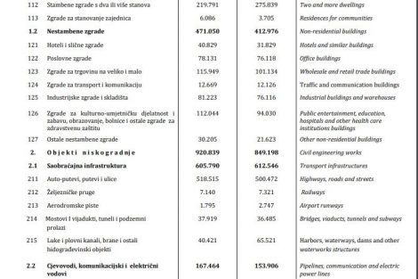 Što se tiče vrijednosti izvršenih radova, najviše se uložilo u autoputeve – 500.472 KM, zatim nestambene zgrade 412.976 KM, a najmanje željezničke pruge i građevine za sport i rekreaciju.