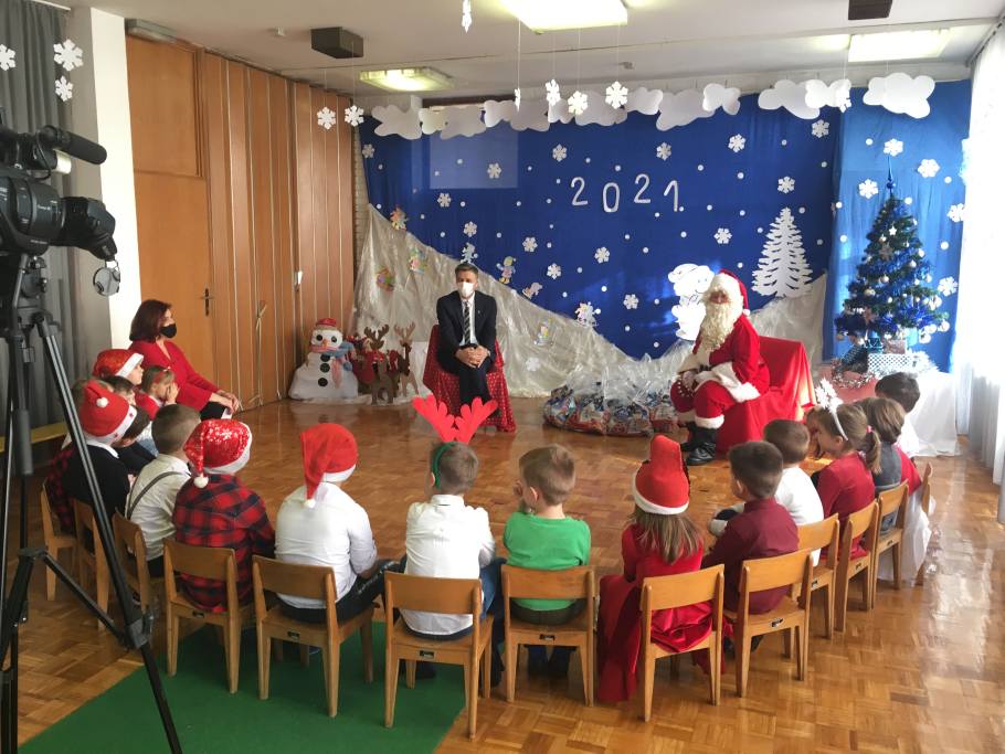 Nakon prigodnog zabavnog programa u kojem su učestvovali mališani vrtića „Radost“ i njihovi odgajatelji, gradonačelnik Fuad Kasumović uručio im je novogodišnje paketiće.