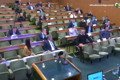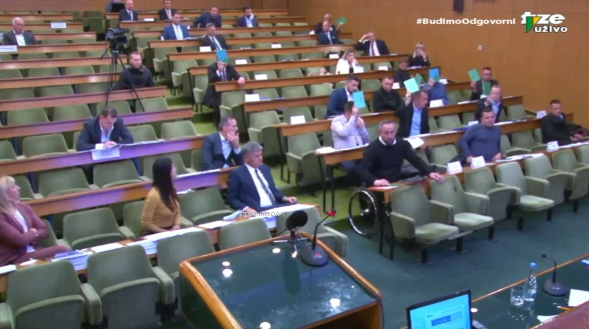 U narednim fotografijama, kao i gornjem videu možete vidjeti kako je izgledalo glasanje ZA (zeleni), PROTIV (crveni) i UZDRŽANI (bijeli kartoni)