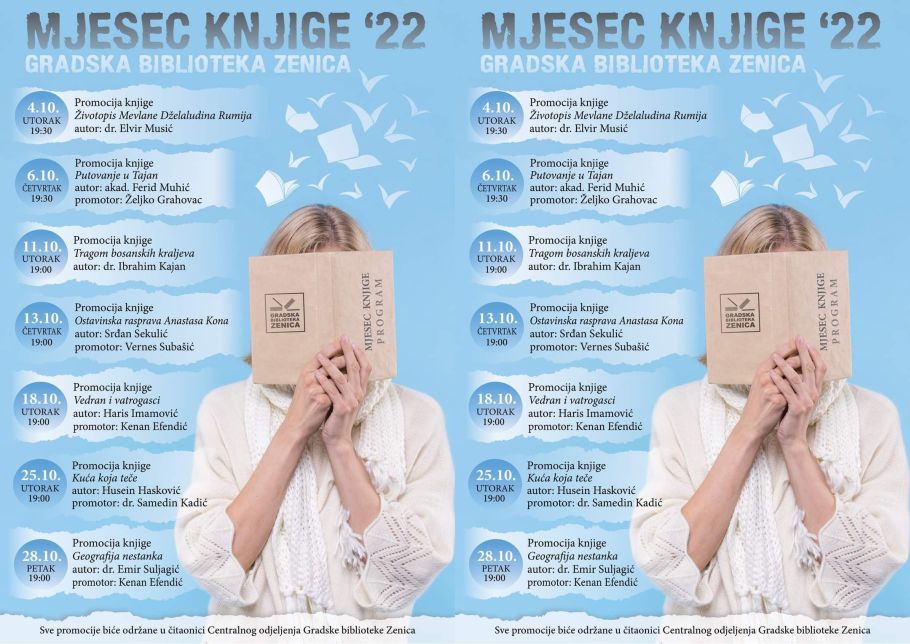 – Molio bih korisnike i građane da pronađu na Facebook stranici Gradske biblioteke Zenica i na plakatima koji će biti izloženi u svim našim odjeljenjima, cijelomjesečni program manifestacije „Mjesec knjige 2022“, kako bi se upoznali sa svim aktivnostima i njihovim terminima – poručuje Ormanović.