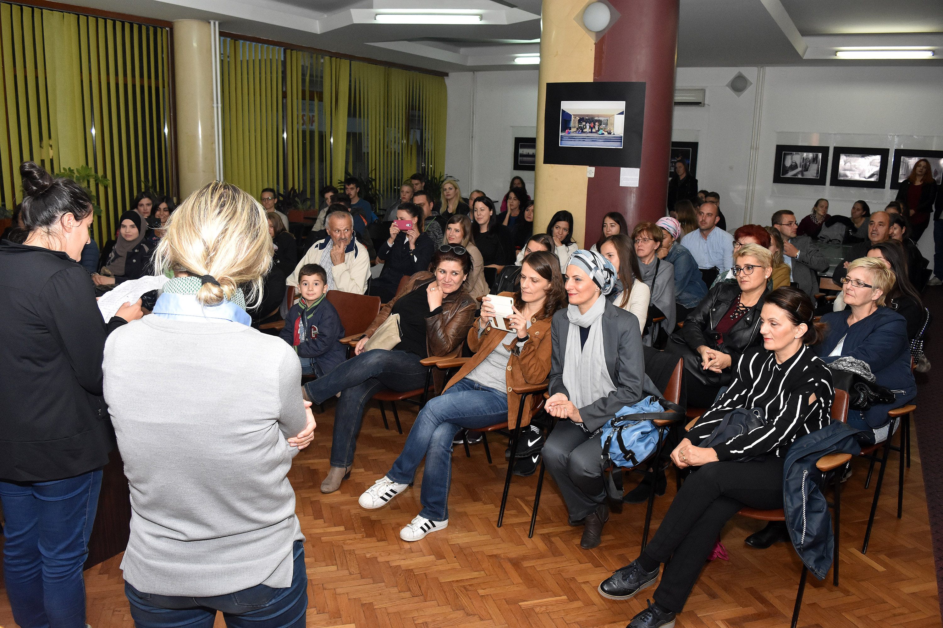 Skupu su se obratile Majda Turkić, predsjednica organizacije Kreativci i Suzana Čančar, štićenica Sumera. Nakon otvorenja izložbe, posjetitelji Gradske biblioteke Zenica imali su priliku družiti se s autoricama projekta Žene BiH, Mašom Durkalić i Hatidžom Gušić. Program su, ugodnim notama, dodatno obogatili učenici zeničke srednje muzičke škole.