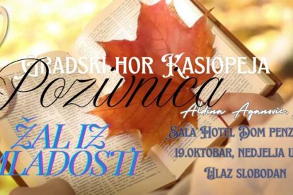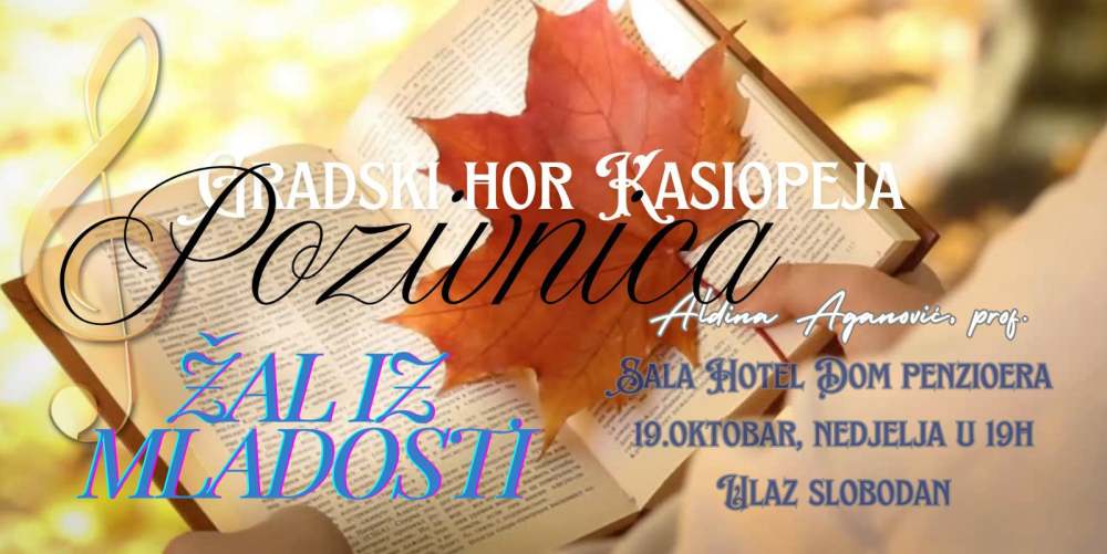 Gradski Hor Kasiopeja sa svojom dirigenticom prof Aldinom Aganović organizira koncert pod nazivom Žal iz mladosti.