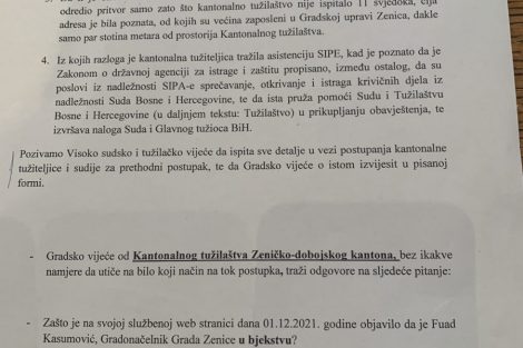 Ono što Vijeće zahtijeva od Kantonalnog tužiteljstva ZDK je odgovor zašto su na službenoj stranici dana 01.12.2021. objavili da je Fuad Kasumović u bjekstvu, jer kako navode, nije mu bio uručen nikakav poziv za saslušanje.
