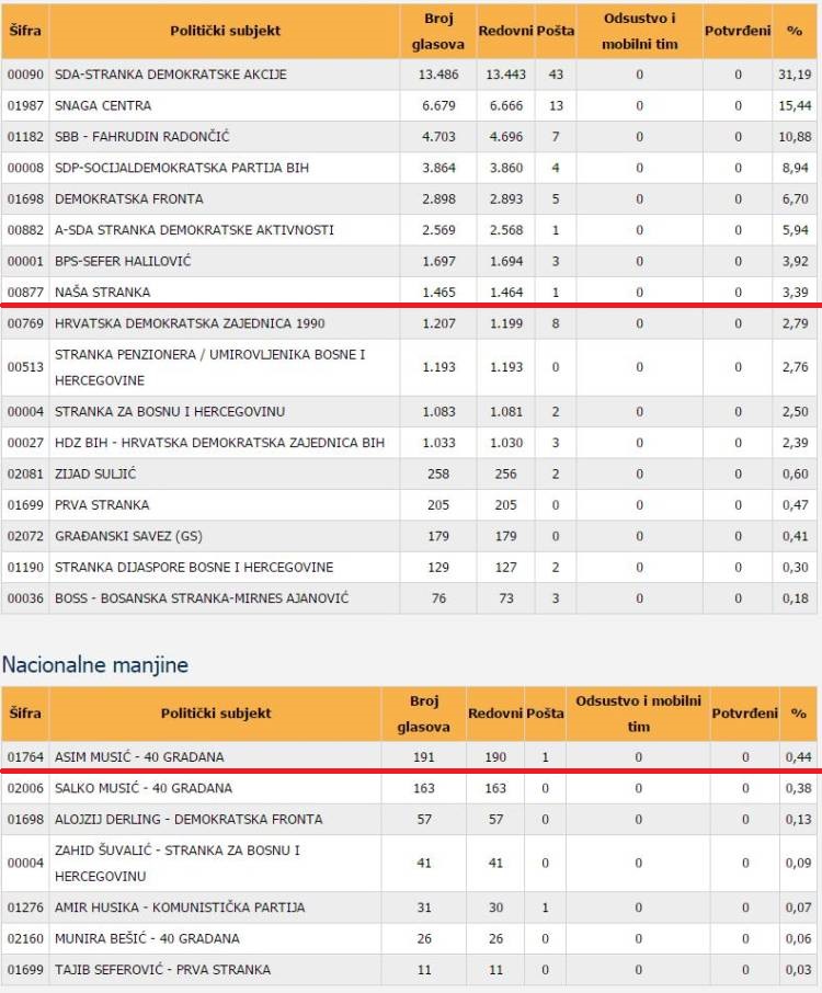 Podsjećamo, budući Gradonačelnik Zenice je Fuad Kasumović, koji prema posljednjim podacima CIK-a dobio 16.123 glasa