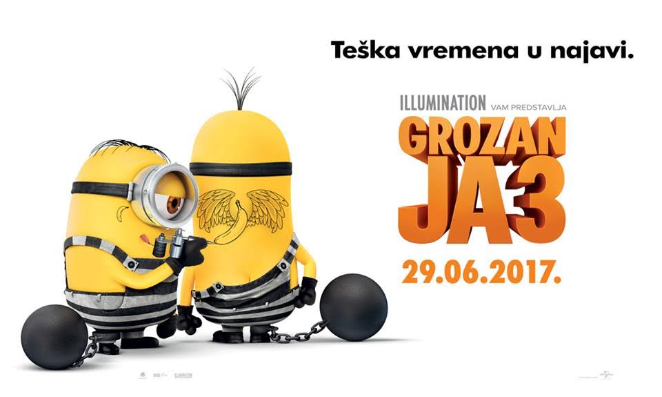 “GROZAN JA 3” (DESPICABLE ME 3) počet će da se prikazuje u pretpremijernom periodu od 24. do 28. juna u Cinema City Sarajevo, Cineplexx Palas Banja Luka i Multiplex Ekran Zenica. Illumination, koji je publici donio „Grozan ja“ i najveće animirane hitove 2013. i 2015, „Grozan ja 2“ i „Malce“, nastavlja avanture Grua, Lucy, njihovih predivnih kćerkica – Margo, Edith i Agnes – i Malaca u filmu „Grozan ja 3“.