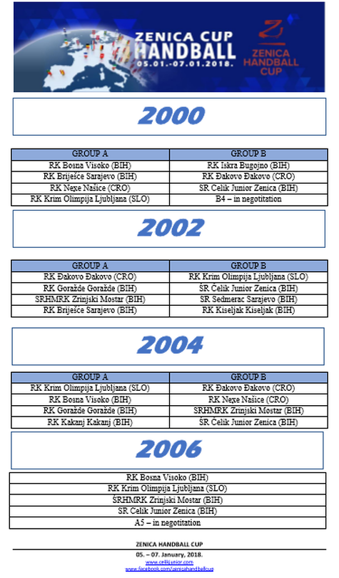 Grupe i raspored na 8. Handball Cupu – Zenica 05.-07.01.2018.god.