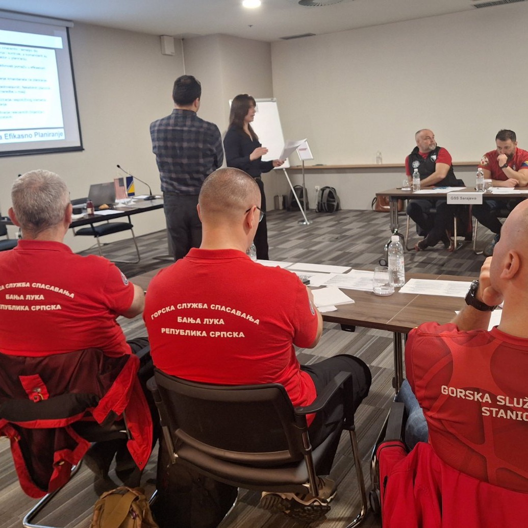 Tokom trajanja radionice učesnici su se upoznali sa doktrinom dobrog vođenja tima, metodom planiranja misije te strukturom komandovanja u kriznim situacijama koju primjenjuje agencija FEMA. Također su međusobno predstavili kapacitete svojih stanica te grupno pristupili vježbi planiranja odgovora na prirodnu katastrofu po zadatim scenarijima.