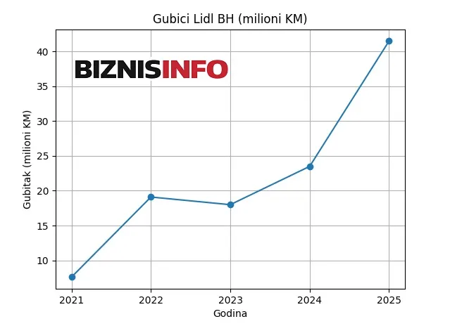 Kompanija Lidl BH prošle godine ostvarila je gubitak od 41,5 miliona KM, što je gotovo dvostruko više u odnosu na minus od 23,5 miliona KM iz 2024. godine.
