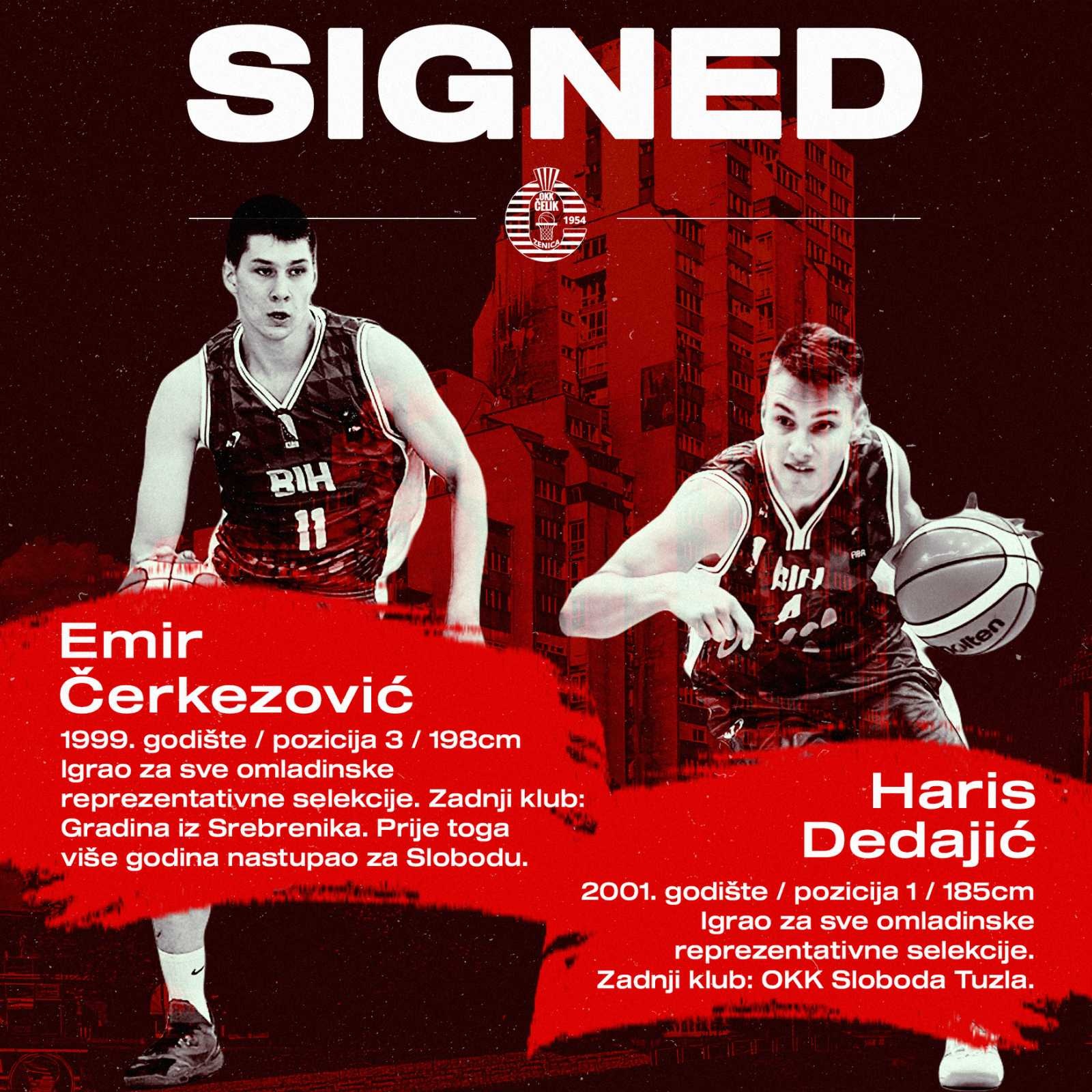 Dvadesetdvogodišnji Čerkezović je posljednju sezonu igrao za ekipu Gradine iz Srebrenike, dok je prije toga branio boje OKK Sloboda Tuzla, dok dvadesetogodišnji Dedajić dolazi iz Slobode u Čelik.