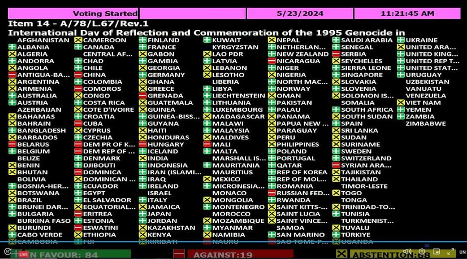 Generalna skupština donosi odluku da 11. juli proglasi Međunarodnim danom sjećanja i obilježavanja genocida 1995. godine u Srebrenici