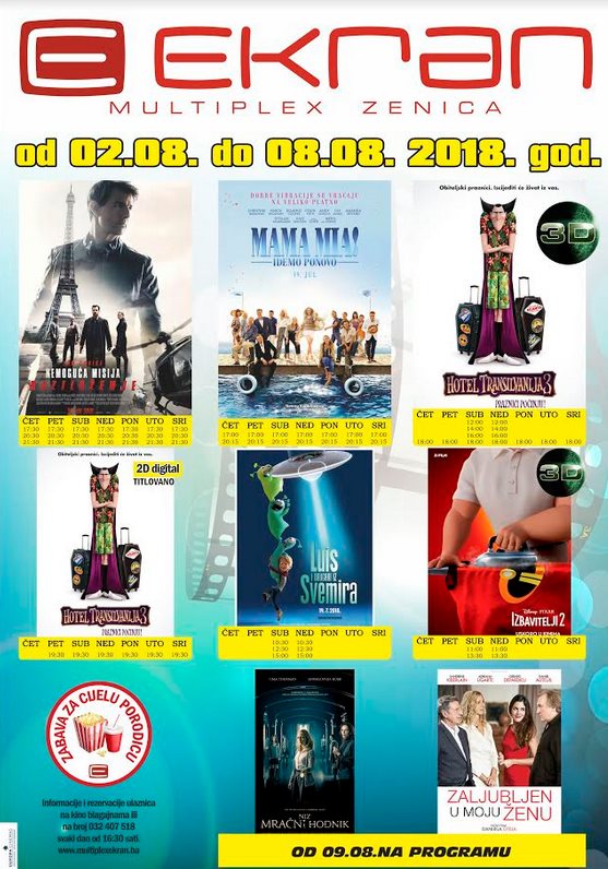 Prva sedmica avgusta u Multiplexu Ekran od 02.08. donosi hit animiranu komediju za sve generacije u 3D sinhronizovanom i 2D titlanom formatu “HOTEL TRANSILVANIJA 3”
