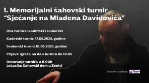 Ostali sportovi RASPIS: Prvi memorijalni šahovski turnir “Sjećanje na Mladena Davidovića” 15.05.2025.
