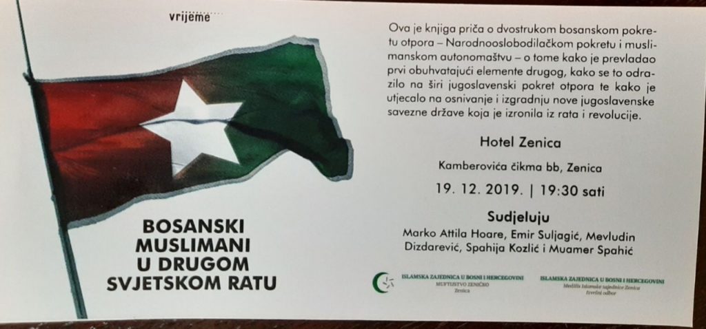 U Hotelu Zenica u četvrtak 19.12. od 19:30 će biti upriličena promocija knjige “Bosanski muslimani u Drugom svjetskom ratu” britanskog historičara i vanrednog profesora na SSST-u u Sarajevu Marka Attile Hoarea.