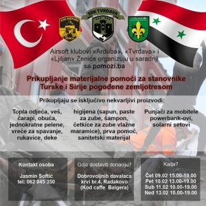 SRK Tvrđava u koordinaciji sa Savez Airsoft Klubova u Federaciji BiH a uz saradnju s Airsoft klub Arduba Zenica i Airsoft klub Ljiljan organizuje veliku akciju prikupljanja pomoći za preživjele.