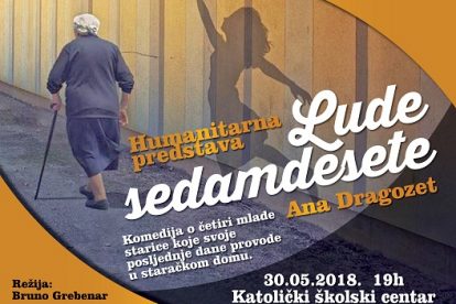 Prva od aktivnosti u našoj kampanji je humanitarna predstava “Lude sedamdesete” koja priča o četiri “mlade” starice u staračkom domu i njihovoj njegovateljici. Što se događa s te četiri žene koje su ,,osuđene“ da svoje posljednje dane provedu u staračkom domu? Što biva s pojedincima koji se nalaze na marginama društva? Predstava je svojevrsno slavlje života svih nas, a posebno života četiri „mlade starice“. To što su ostarile ne mora značiti da svaki dan ne trebaju pokušavati napraviti novi korak u život, a da se pritom ne koriste štapom.