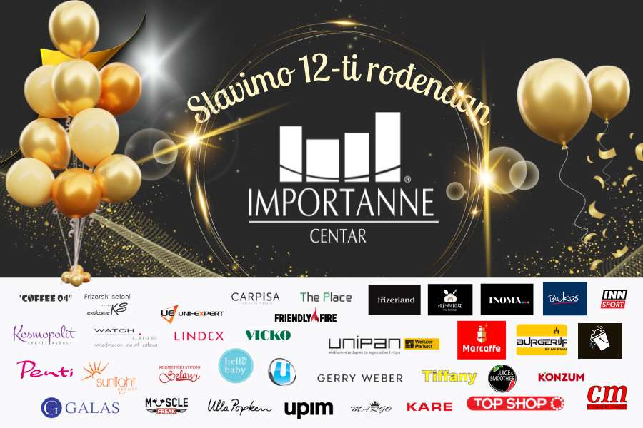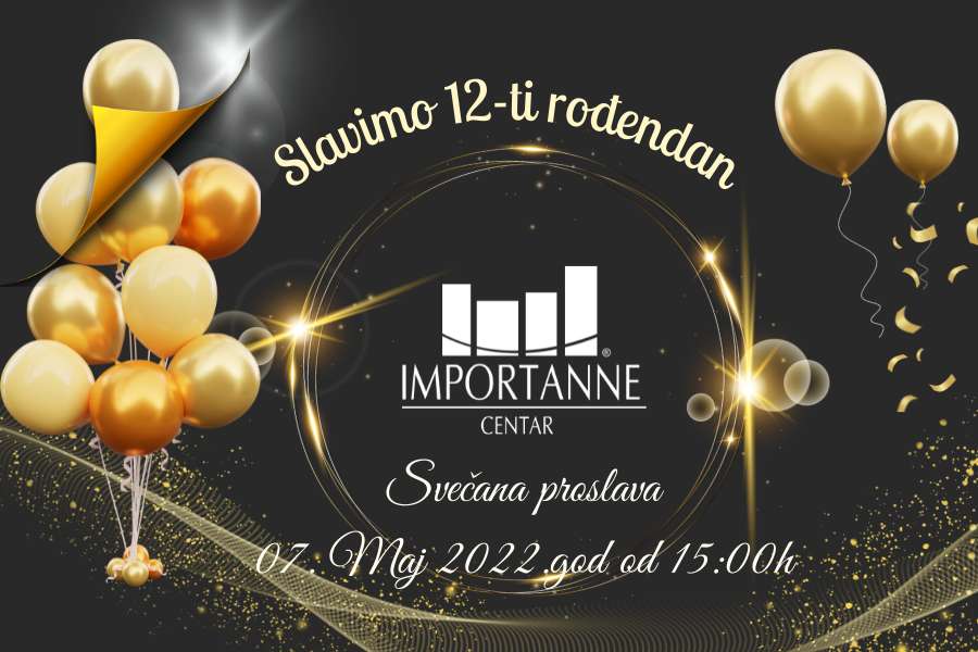 Importanne centar 06.05.2022. godine obilježava svoj 12. rođendan za sve posjetitelje pa je tim povodom pripremljena i svečana proslava sa veoma bogatim programom u subotu 07.05.2022. godine od 15:00 sati na koju su pozvani svi posjetioci.