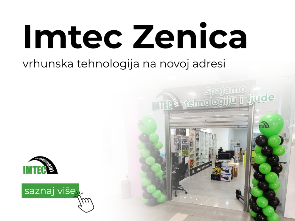 Dođi u Imtec Zenica – da se ponovo sretnemo tamo gdje počinje tehnologija. Naša nova adresa je Zenica City Centar, etaža 1, Kamberovića čikma bb.