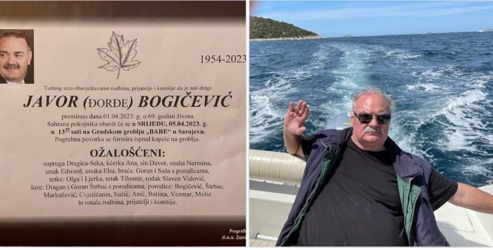 Preminuo je naš sugrađanin, veliki čovjek velikog srca Javor- Javorko Bogičević. Neka mu je vječni pokoj i smiraj duše njegove, a porodici snage da ovo primi kao jednu neumitnost našeg življenja i naše prolaznosti.