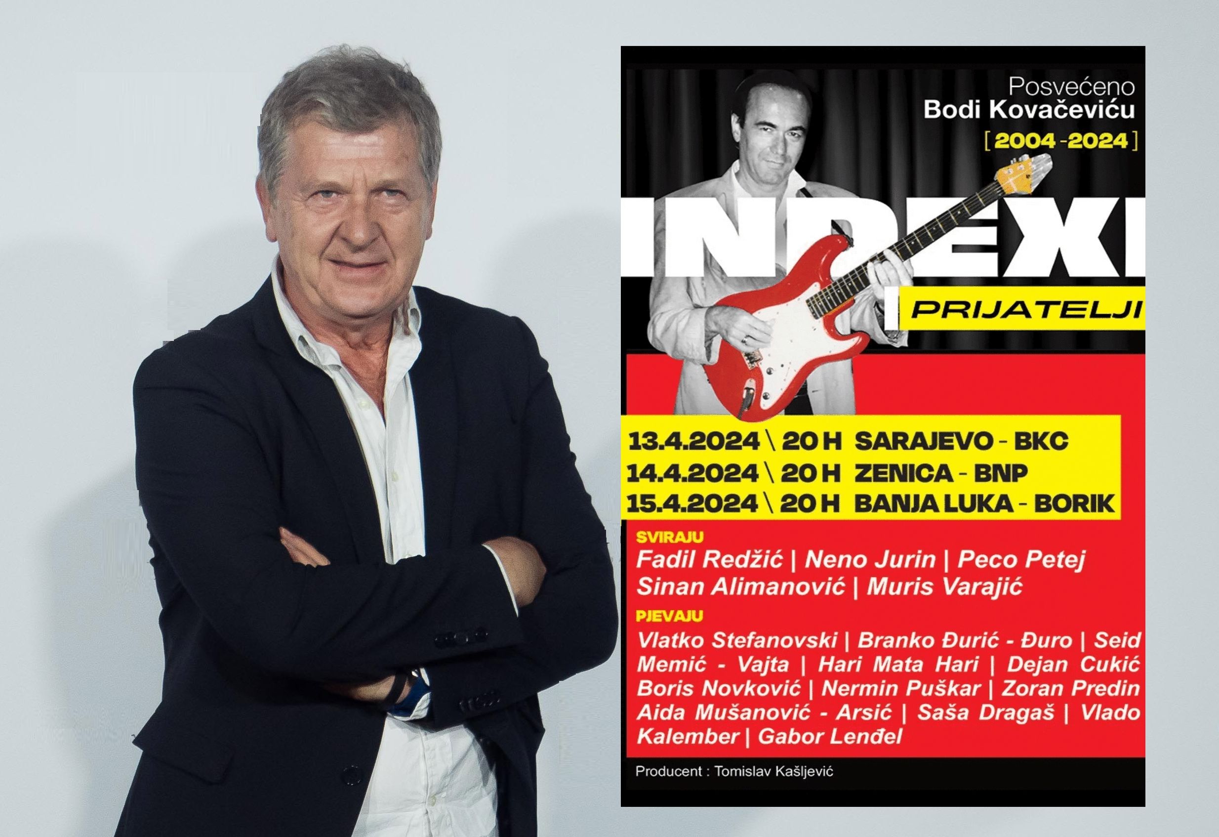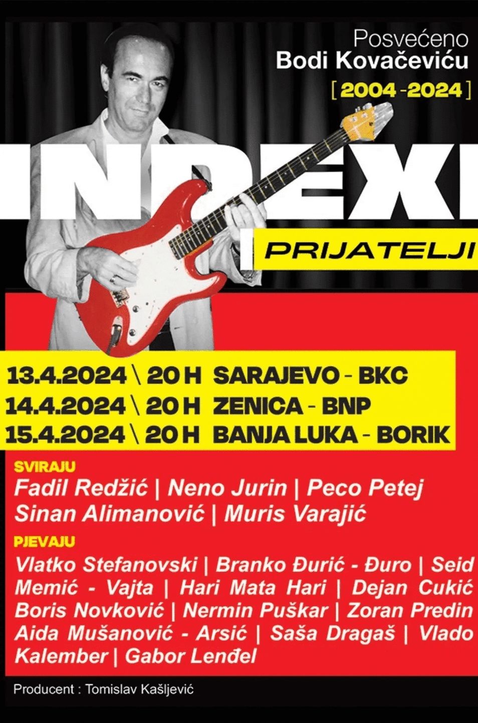 Ovaj put mini turneja koncerata je omaž dvadesetogodišnjaci smrti Bode Kovačevića (2004 – 2024), a koncert Indexi i prijatelji će, osim u Zenici, biti održani i 13. aprila u BKC Sarajevo, te 15. aprila u dvorani Borik u Banja Luci. Sva tri koncerta počinju u 20 sati.