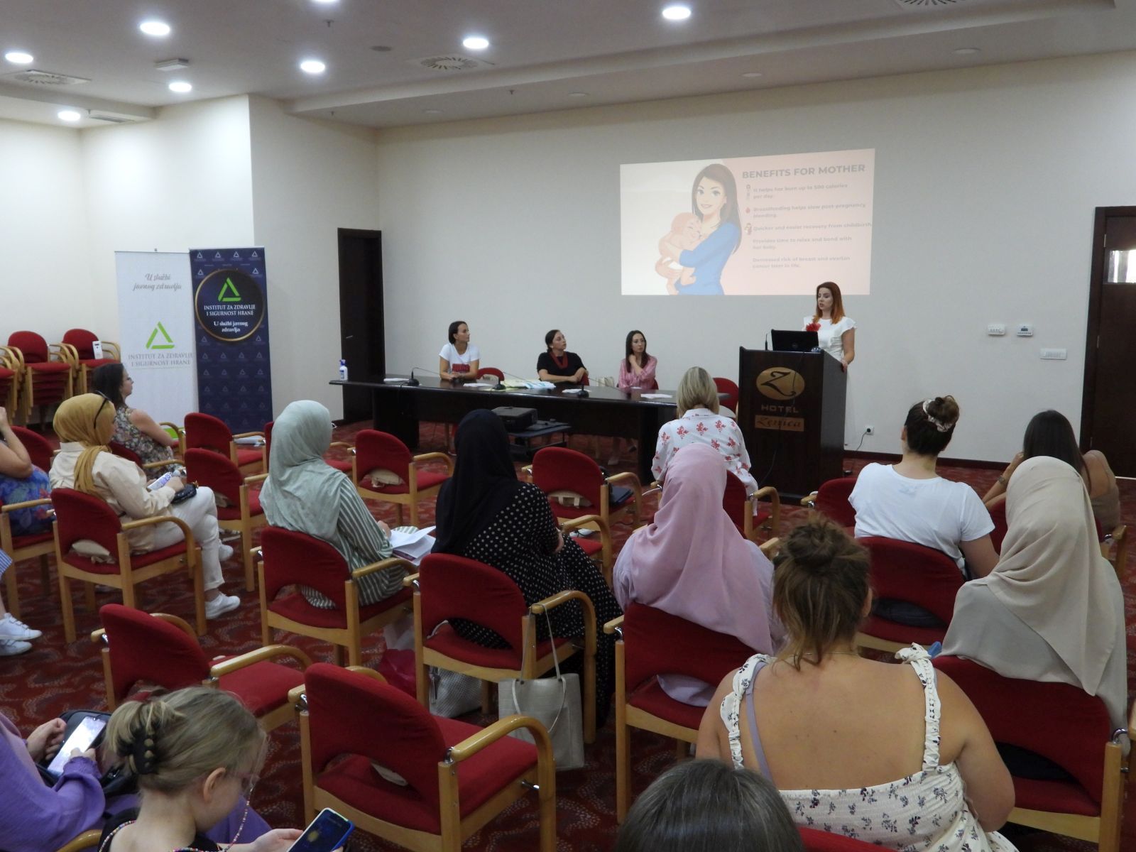 Ines Jakupanec je međunarodno certificirana “mama savjetnica” za dojenje, a budućim i mladim majkama je govorila o praktičnim potezima, načinu i problemima sa kojima se susreću majke, dilemama koje trebaju otkloniti, kao i dosadašnjem iskustvu sa predavanja i upita majki.