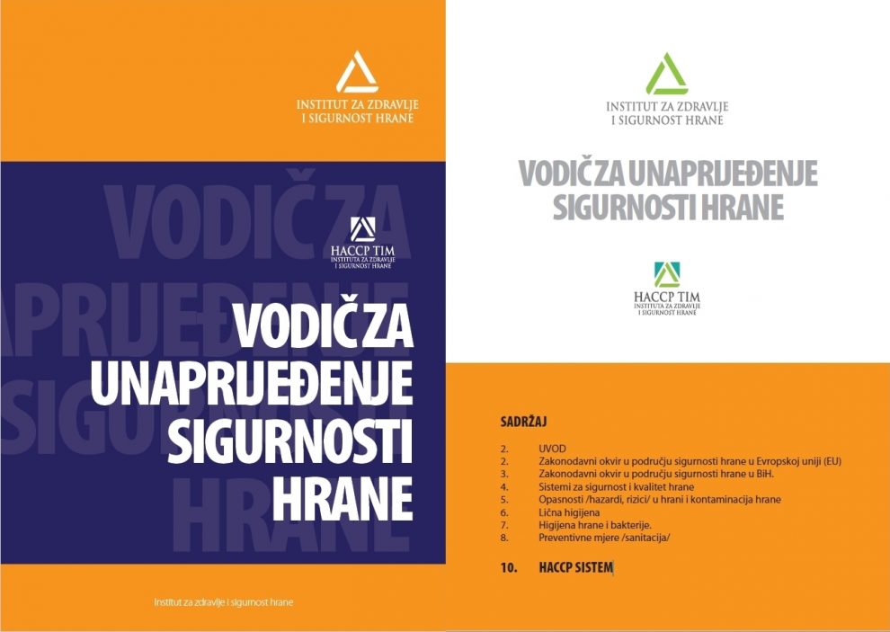 Zbog toga, stručnjaci ovog Instituta su odlučili da javnosti, proizvođačima hrane i svim drugim zainteresovanim na raspolaganje ustupe elektronsko izdanje “Vodiča za unaprijeđenje sigurnosti hrane”, brošuru sa osnovama koje treba poznavati svaki potencijalni ili aktuelni proizvođač hrane, ali i konzument. Vodič je objavljen na internet prezentaciji Instituta, inz.ba.